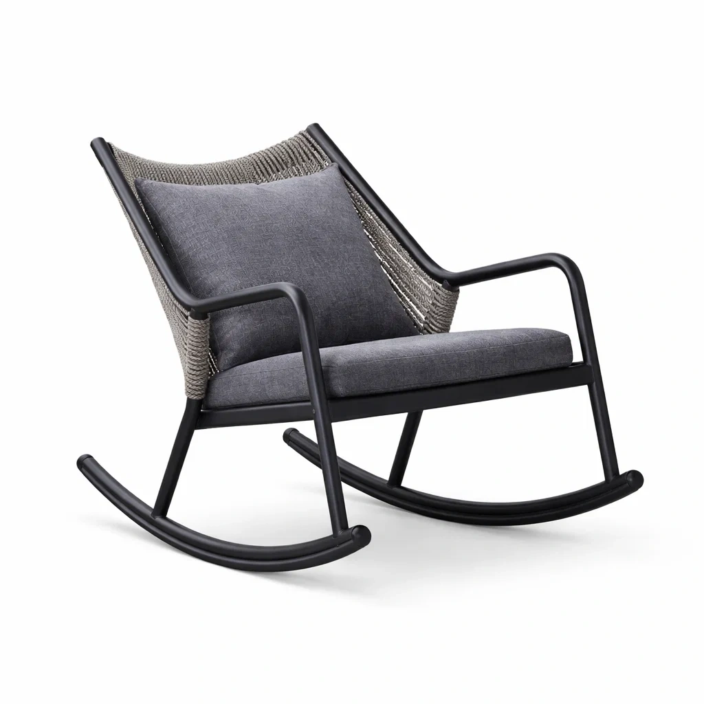 Schaukelstuhl aus Aluminiumrahmen Grau mit Polyesterpolster und Seilgeflecht