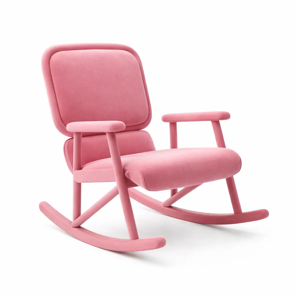 Schaukelstuhl mit Holzrahmen und rosa Polsterung